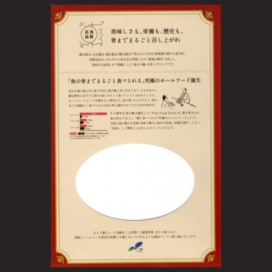 特に忙しい方や一人暮らしの方、ご年配の方などにとっては、手間が多いせいでハードルの高く感じる魚介類。そうした悩みを解消し、おいしい魚介料理を楽しんでいただけるよう、調理不要で長期常温保存が可能な『FISH COOK BOOK』を開発しました。お魚商品は骨まで丸ごと食べられるため、後片付けの手間も少なく栄養価も抜群です。